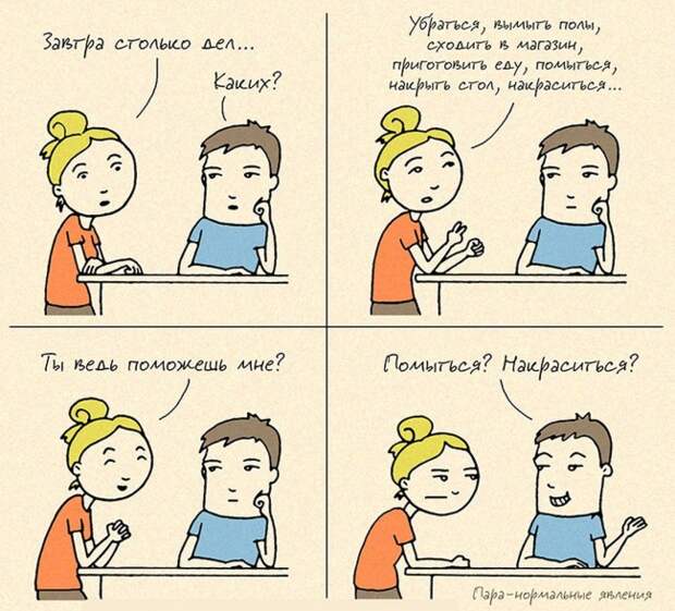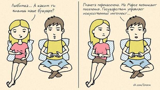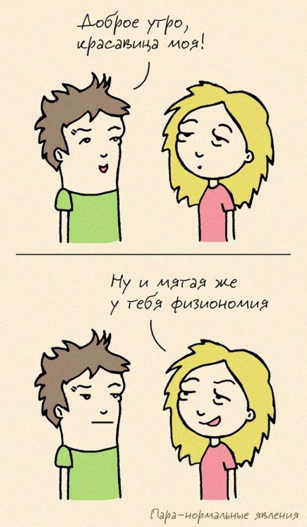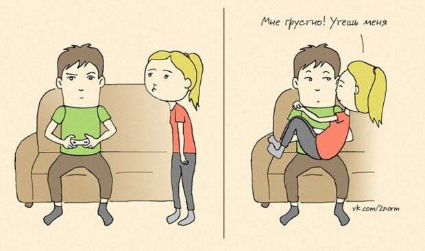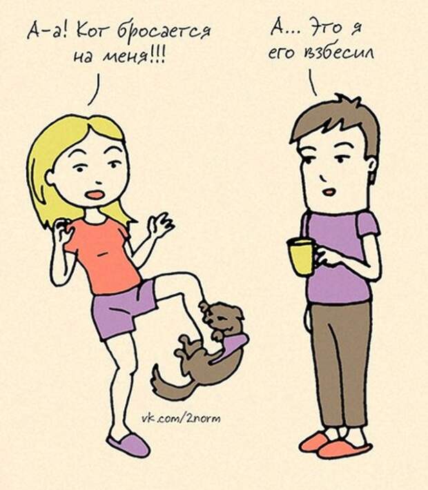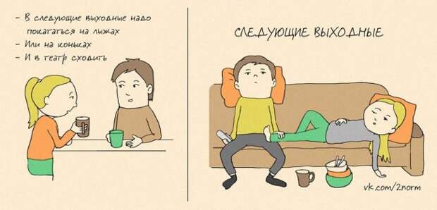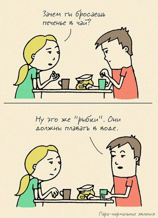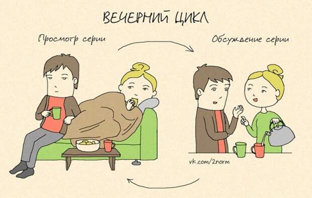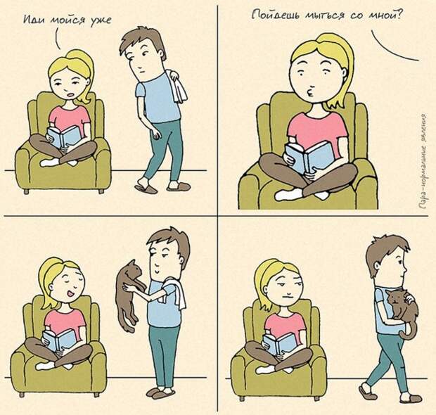 Мила и Сергей — нормальная семейная пара. Он любит заниматься домом и готовить, она — читать книжки и есть. У них есть общий кот и увлечение сериалами. В общем, вполне нормальный жизненный опыт, который они запечатлели в симпатичных комиксах.