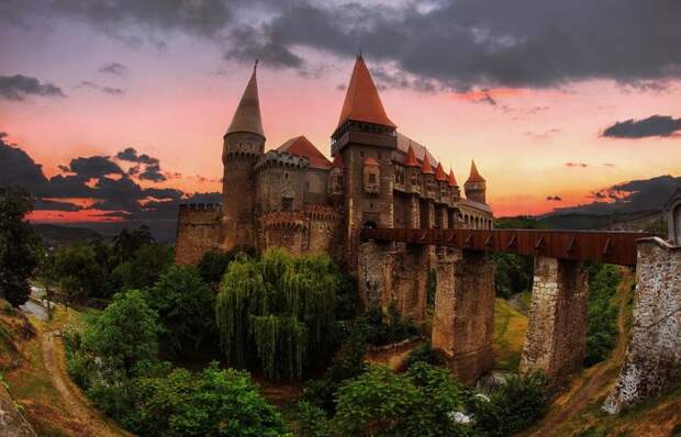 Родовое гнездо дома Хуньяди. Замок находится на юге Трансильвании. Построен был в середине 15 столетия и является образцом неоготического стиля. Замок также интересен тем, что в нем 7 лет провел сам Влад Цепеш (Граф Дракула) в качестве пленника после своего свержения. Нельзя не отметить, что Корвинов является одним из самых ярких и красивых замов во всей Европе. Несмотря на серию пожаров в последние три столетия, замок смог устоять и сегодня является местом паломничества туристов.